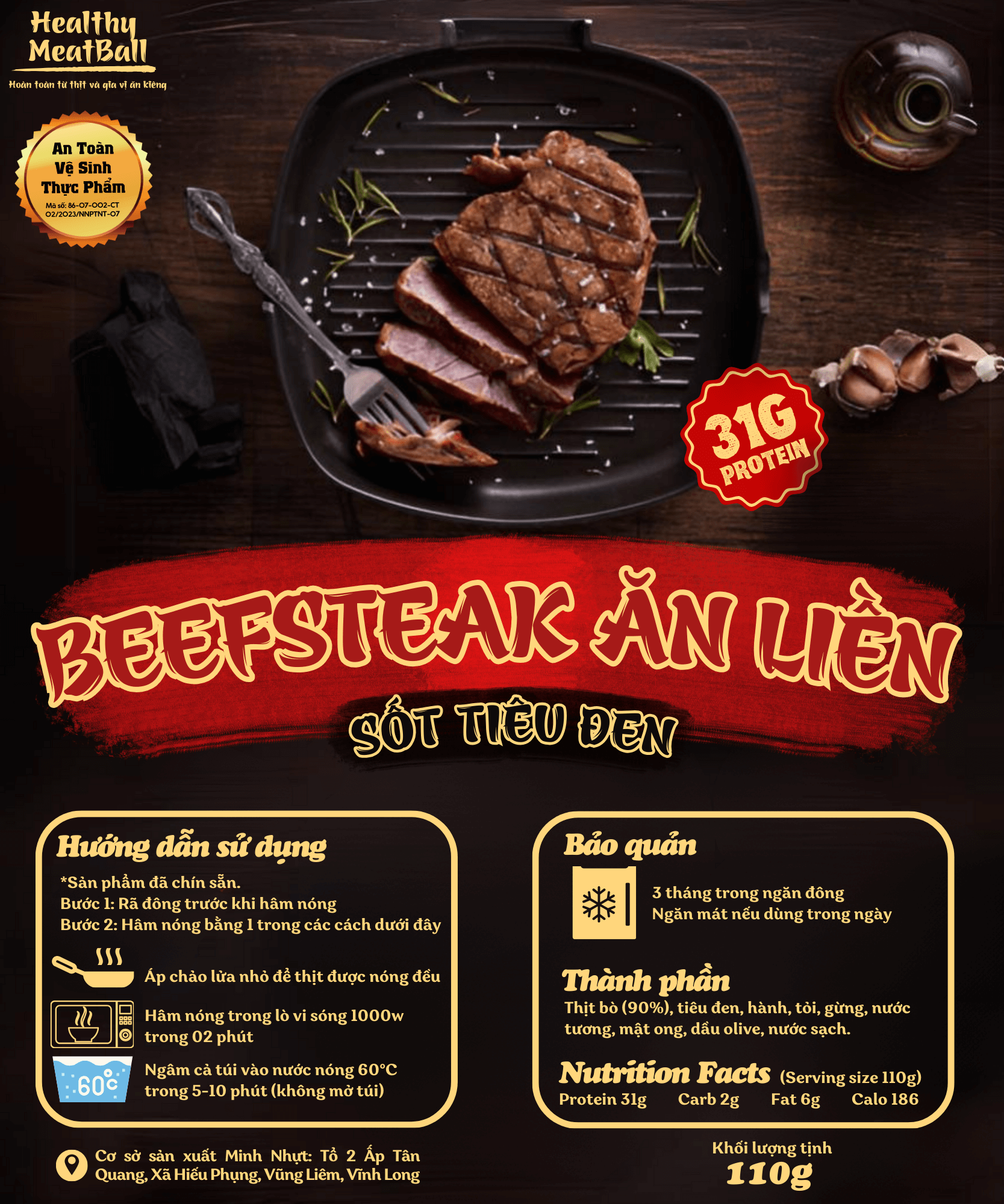 Tiện lợi, thơm ngon như nhà hàng với Beefsteak ăn liền sốt tiêu đen, sẵn sàng phục vụ mọi bữa ăn nhanh gọn mà vẫn đầy đủ dinh dưỡng.
