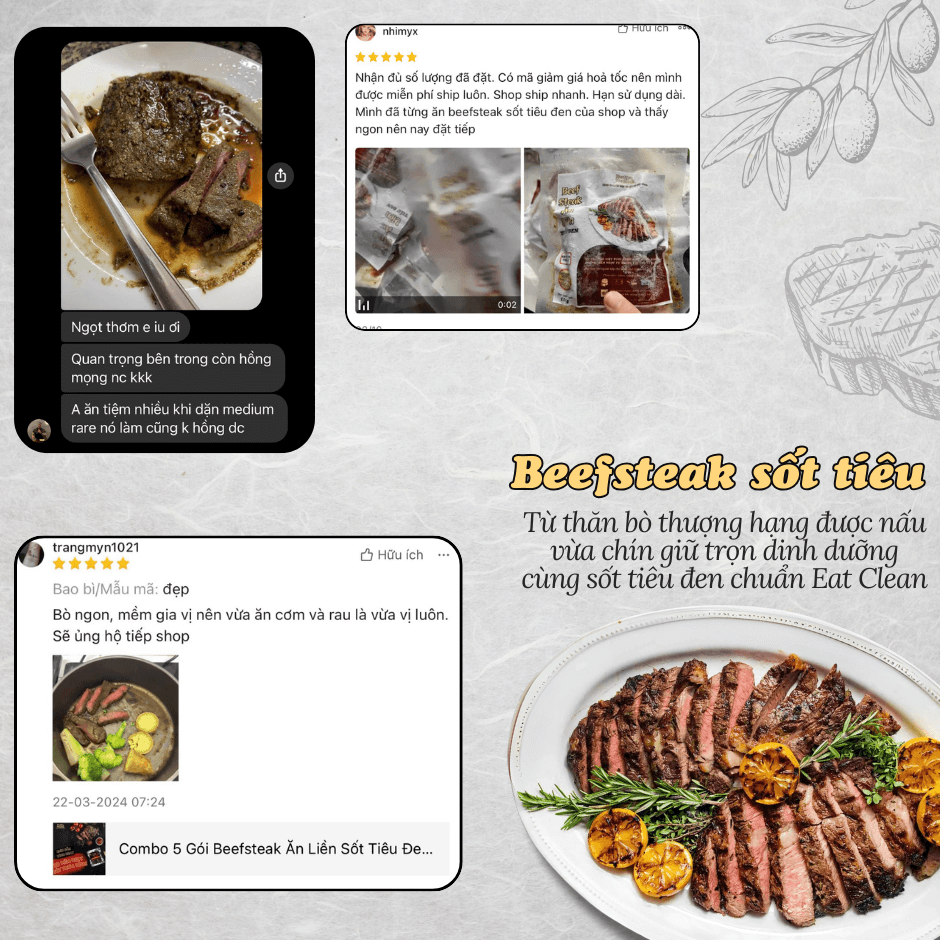 Beefsteak Eat Clean sốt tiêu đen – Gói 110g ăn liền