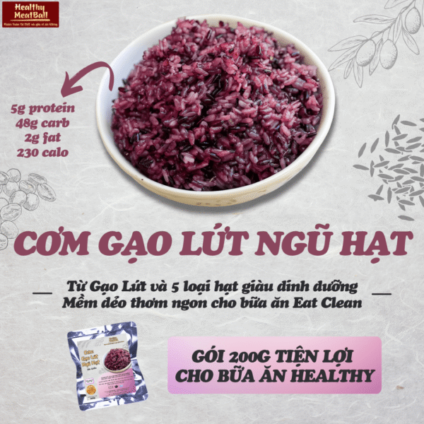 Cơm Gạo Lứt Ngũ Hạt – Là thành quả sau thời gian dài bếp Healthy MeatBall nghiên cứu và thử nghiệm công thức tỉ lệ hạt – gạo chuẩn chỉnh, đảm bảo hạt dẻo, bùi, ngon, dễ ăn mà vẫn giữ trọn vẹn giá trị dinh dưỡng.