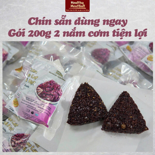 - Kết hợp hoàn hảo từ gạo lứt tím than dẻo bùi cùng 5 loại hạt bổ dưỡng: đậu đen, đậu đỏ, đậu Hà Lan, hạt kê, mè trắng.