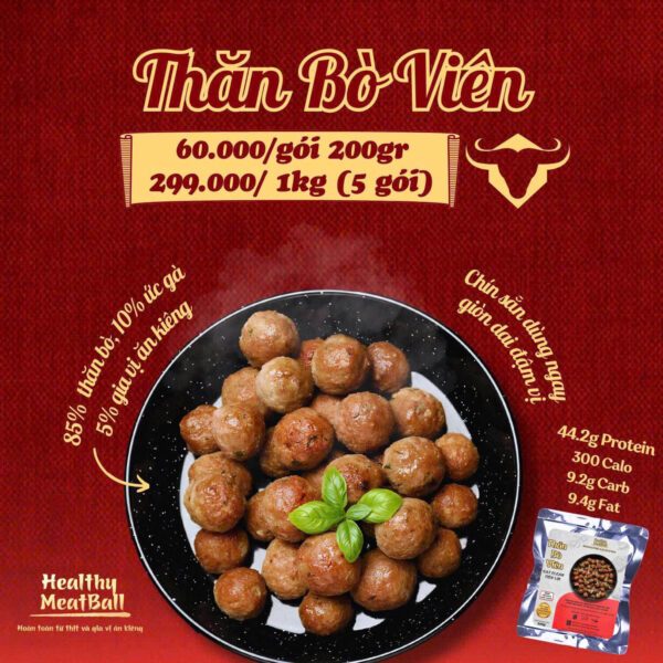 Bò viên là món ăn truyền thống mang hương vị đậm đà, tính chất của viên thịt giòn dai sực sực là món ăn yêu thích của nhiều thực khách, Healthy MeatBall đã cách tân Bò Viên Thăn theo công thức chuẩn Eat Clean dành cho người ăn kiêng mà vẫn giữ nguyên hương vị thơm ngon truyền thống.