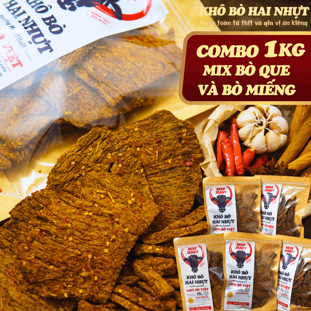 COMBO 1KG 5 GÓI – Khô bò Hai Nhựt Eat Clean từ bò tươi Vĩnh Long giàu đạm